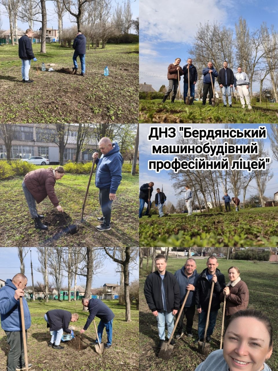Традиційно у квітні викладачі та студенти Державного навчального закладу “Бердянський машинобудівний професійний ліцей” проводять весняну толоку. Спільна справа на свіжому повітрі об’єднує. Сьогодні активно долучилися до благоустрою – прибрали сухе листя та сміття, а також висадили молоді дерева, п’ять саджанців катальпи та шість кущів калини – символу України, що уособлює красу, силу та незламність нашого народу.